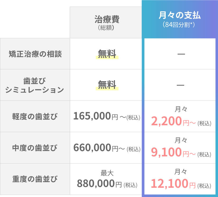 当院のマウスピース矯正プランは以下の通りです。